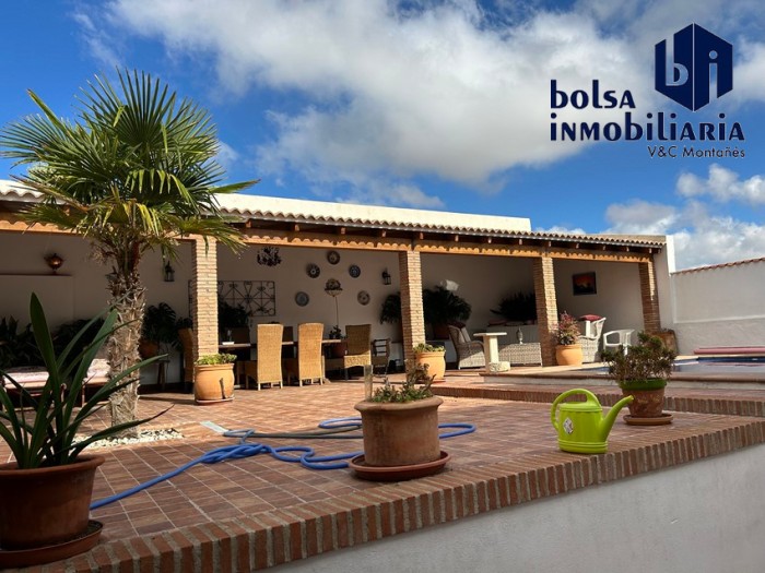 En el exterior nos encontramos con un gran porche donde relajarte al aire libre, cuenta con varias zonas destinadas a zona de recreo y de descanso y además para darle más confort tiene una piscina privada.