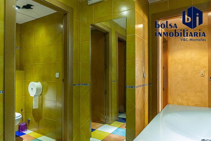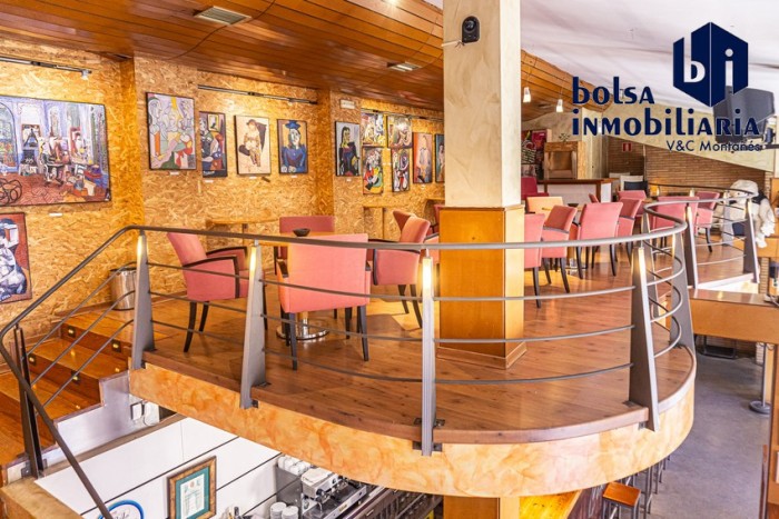 Cuenta con dos plantas, la planta baja tiene zona de barra, almacén y cocina con monta cargas a la planta primera, baños para señoras y caballeros y una zona con un pequeño escenario.